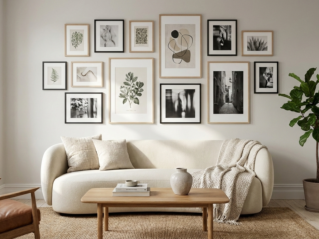 Transform empty walls into a statement feature. We design and install gallery walls with perfect spacing and visual flow, bringing personality and structure to your space.